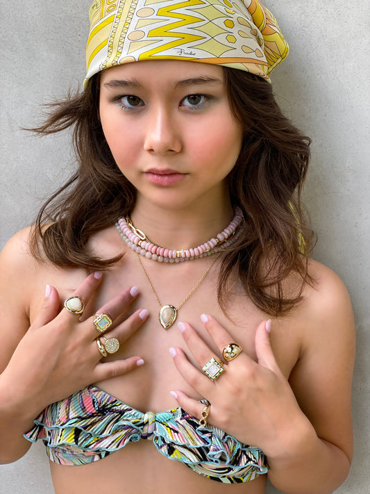 14K YG Ethiopian Opal and Amethyst Trilogy Ring