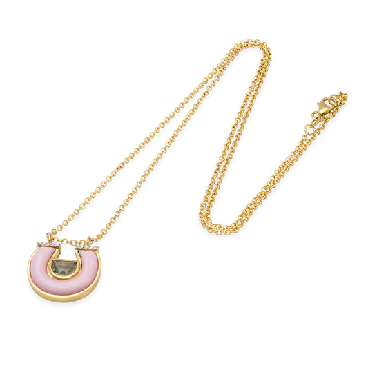 14K YG Green Amethyst, Pink Opal and Diamond Horseshoe Necklace