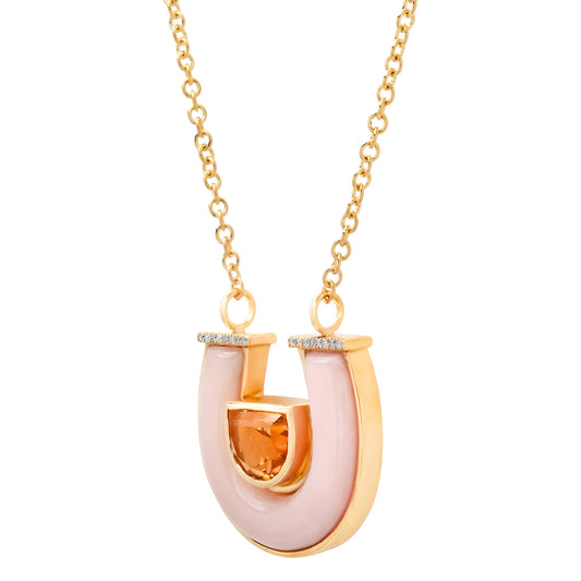 14K YG Jumbo Citrine, Pink Opal and Diamond Horseshoe Necklace