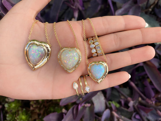 14K YG Heart Shaped Ethiopian Opal and Diamond Necklace