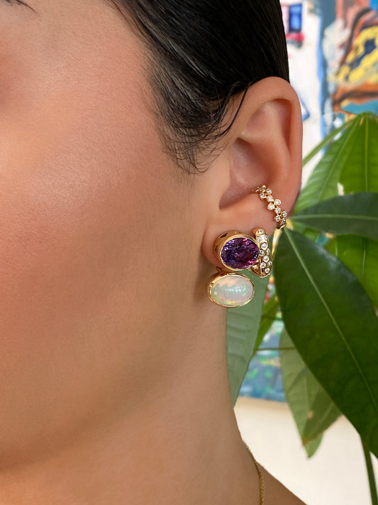 14K YG Multi Sapphire, Opal and Diamond Convertible Earrings