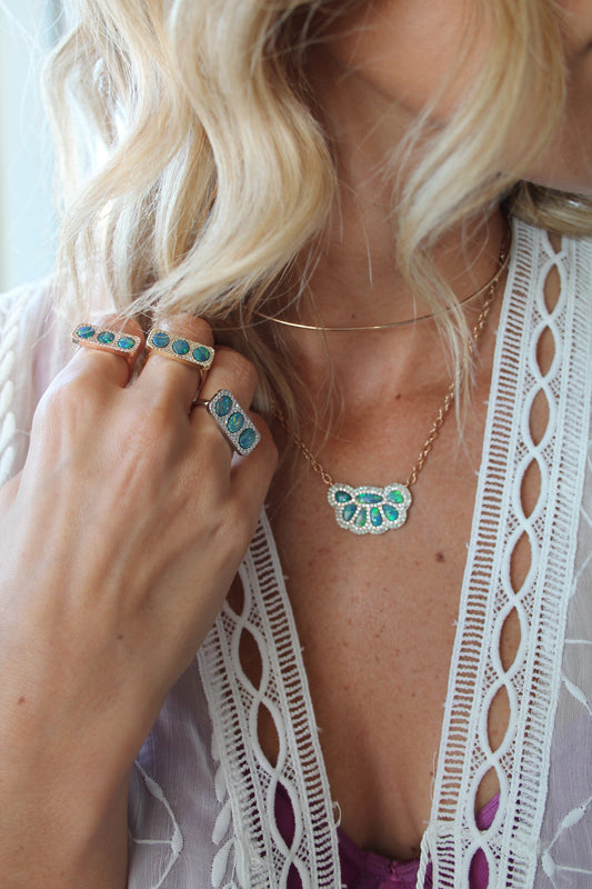 14K RG Opal, Alexandrite and Diamond Paw Necklace