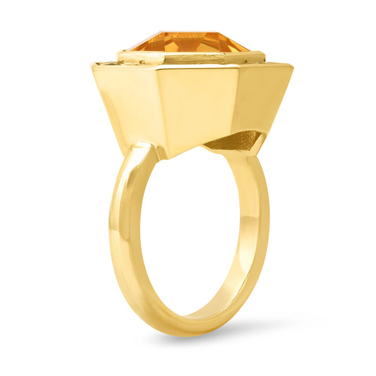 14K YG Citrine, White Agate and Diamond Horseshoe Ring
