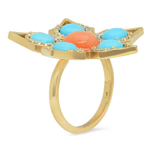 14K YG Citrine, Aventurine and Diamond Horseshoe Ring