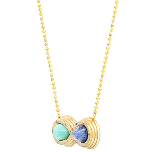 14K YG Citrine, Chrysoprase, Tiger's Eye, Turquoise and Baguette Diamond Horseshoe Necklace