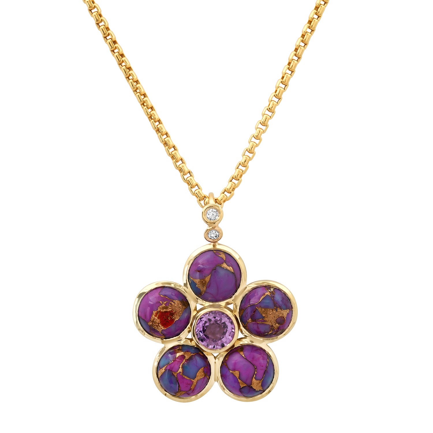 14K Copper Turquoise, Purple Sapphire and Diamond Blossom Necklace