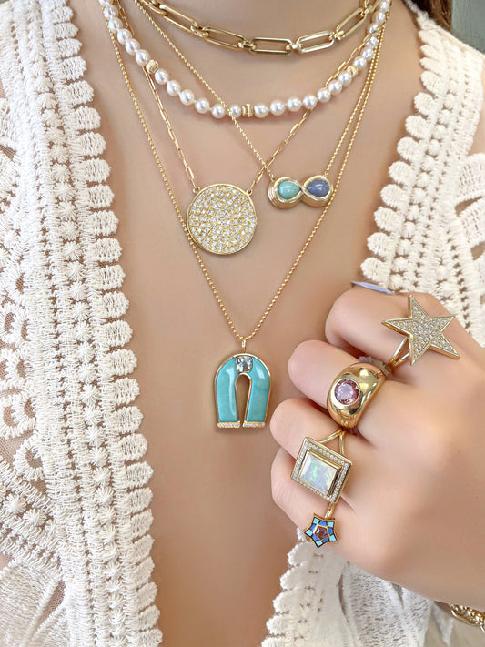 Ditch the safe deposit box sparklers. Our pieces are designed to be worn, cherished, and admired every single day. We use powerful gemstones with unique meanings to elevate your style and cultivate joy.