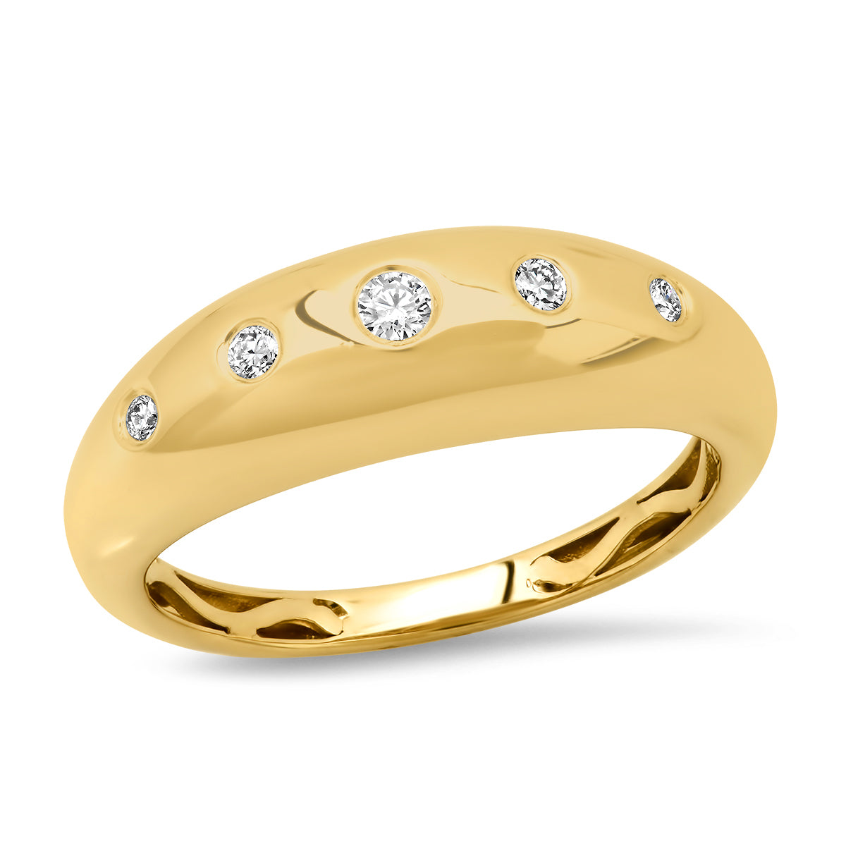 A new addition to our Gypsy diamond ring line up. Sleek and gorgeous, boasting .10 tc diamonds set in 3.5 grams of 14K yellow gold. Fabulous on her own or stacked with any gypsy ring.