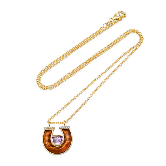 14K YG Amethyst, Tiger's Eye and Diamond Horseshoe Necklace