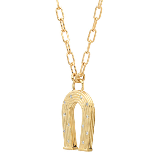 14K Yellow Gold Mini Reeded Diamond Horseshoe Necklace