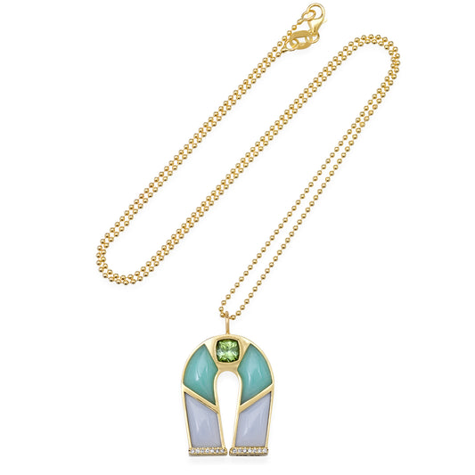 14K Yellow Gold Green Tourmaline, Chrysoprase and Lavender Opal Horseshoe Necklace