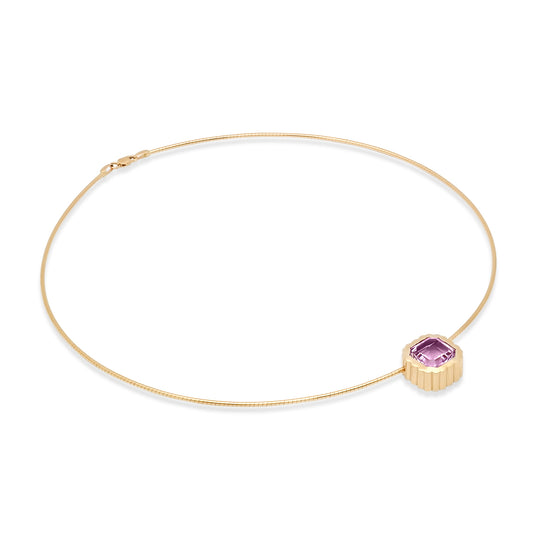 14K YG Omega Asscher Cut Diamond Solitaire Collar