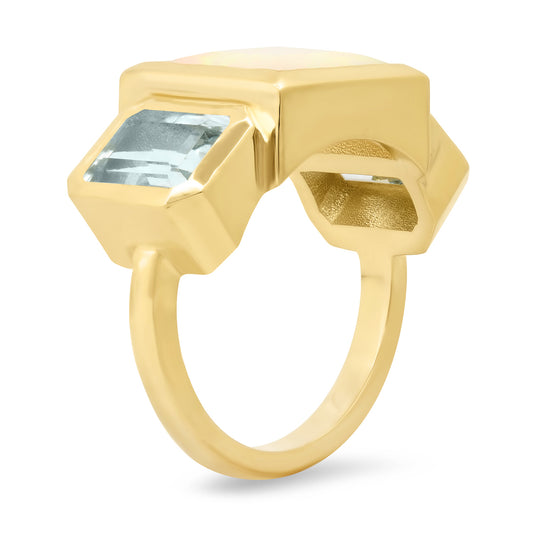 14K YG Ethiopian Opal and Aquamarine Trilogy Ring