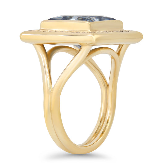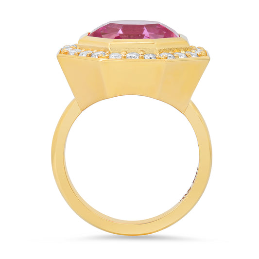 14K YG Pink Ceylon Padparadscha Sapphire and Diamond Bia Ring