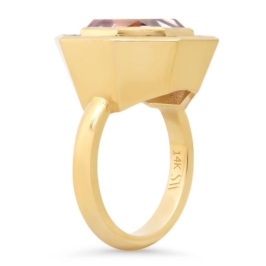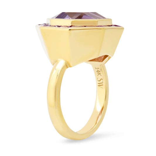 14K YG Rose De France Amethyst and Aquamarine Bia Ring