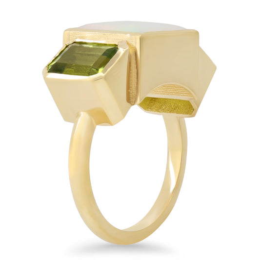 14K YG Ethiopian Opal and Peridot Trilogy Ring