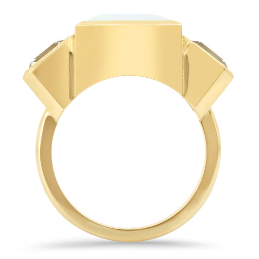 14K YG Ethiopian Opal and Topaz Trilogy Ring