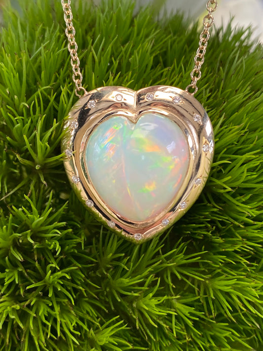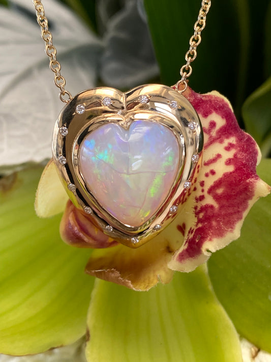 14K YG Heart Shaped Ethiopian Opal and Diamond Necklace