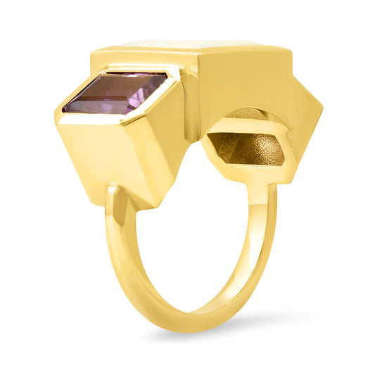 14K YG Ethiopian Opal and Amethyst Trilogy Ring