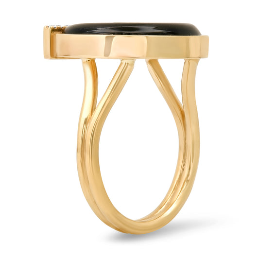 14K YG Peridot, Onyx and Diamond Horseshoe Ring