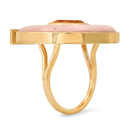 14K YG Jumbo Citrine, Pink Opal and Diamond Horseshoe Ring