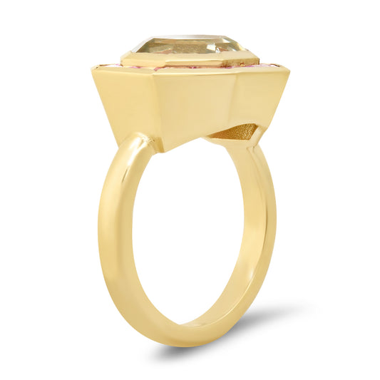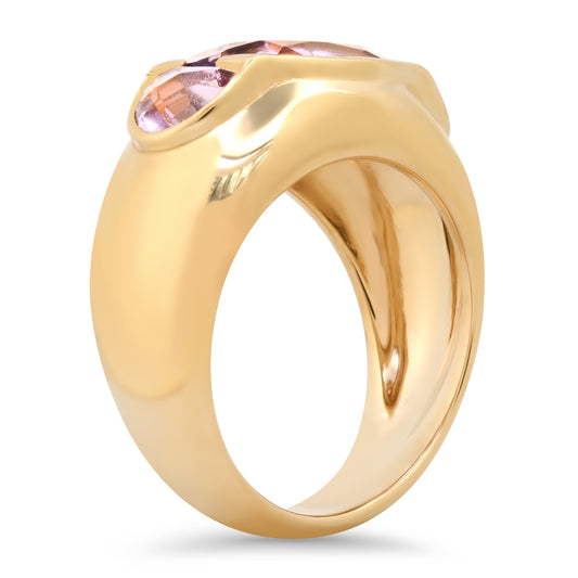 14K YG Green Amethyst and Pink Sapphire Bia Ring