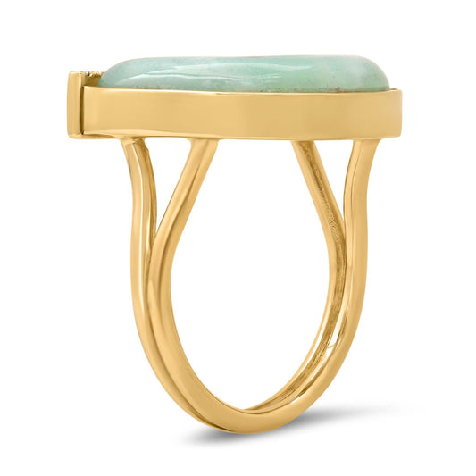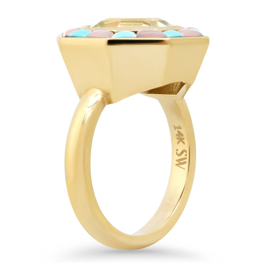 14K YG Green Amethyst, Pink Opal and Turquoise Bia Ring