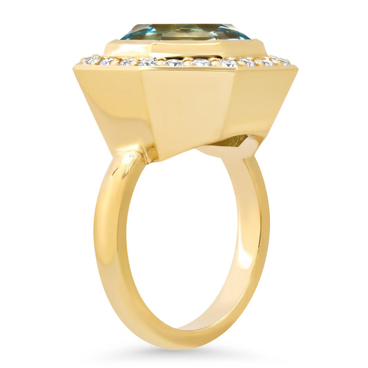 14K YG Prasolite and Diamond Bia Ring