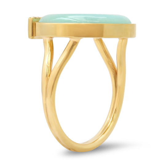14K YG Peridot, Chrysoprase and Diamond Horseshoe Ring
