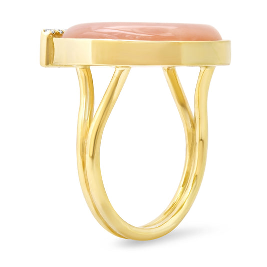 14K YG Peridot, Pink Opal and Diamond Horseshoe Ring