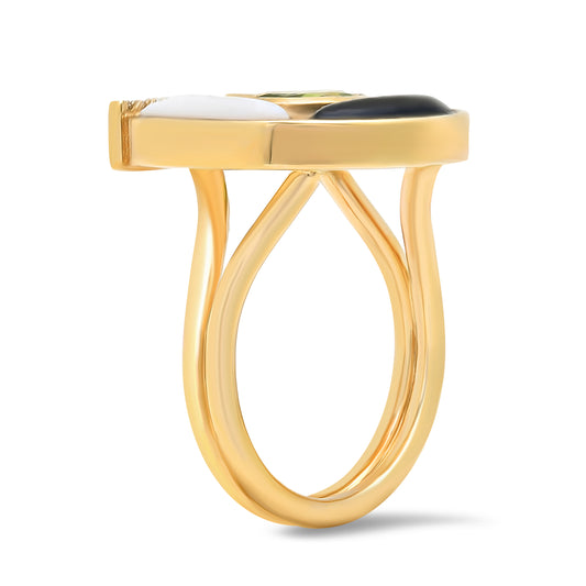 14K YG Peridot, White Agate, Onyx and Diamond Horseshoe Ring