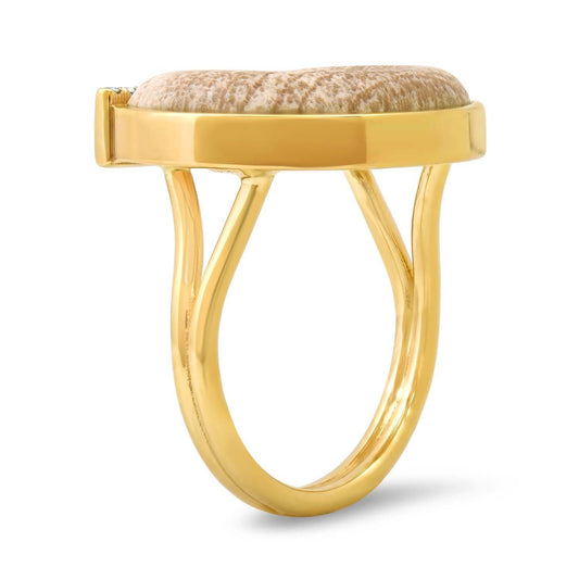 14K YG Topaz, Petrified Wood and Diamond Horseshoe Ring