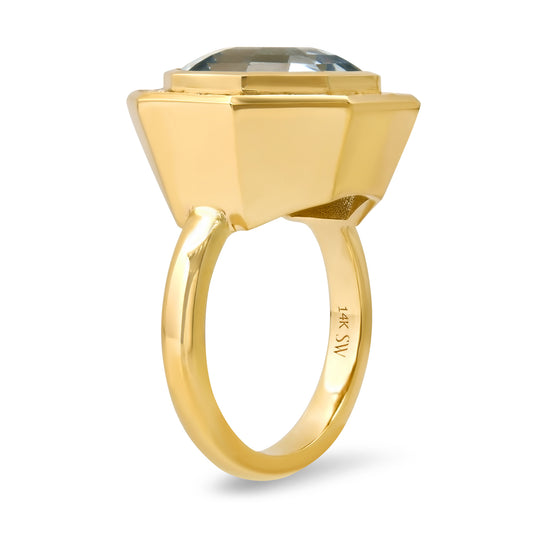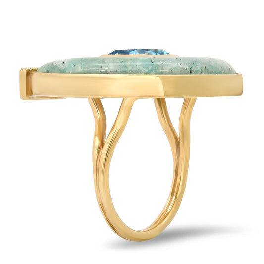 14K YG Jumbo Topaz, Amazonite and Diamond Horseshoe Ring