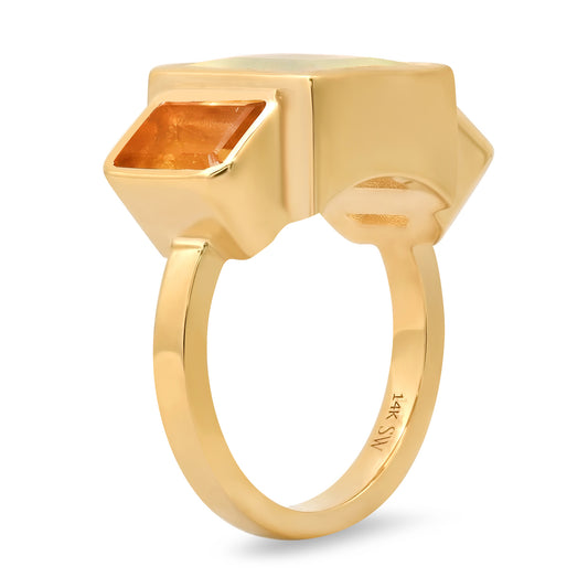 14K YG Ethiopian Opal and Citrine Trilogy Ring