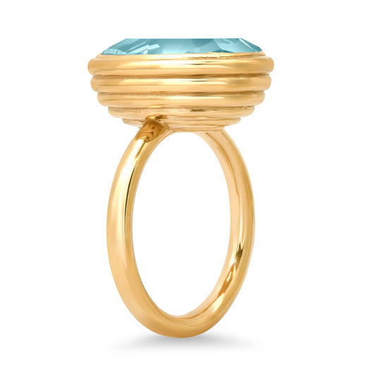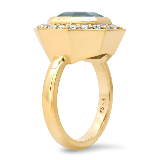 14K YG Brazilian Aquamarine and Diamond Bia Ring
