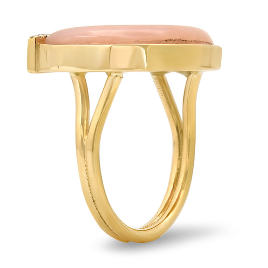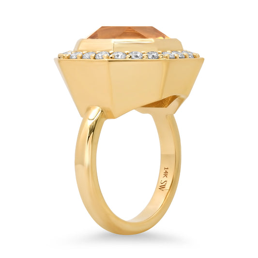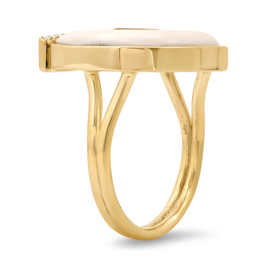 14K YG Citrine, White Agate and Diamond Horseshoe Ring