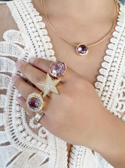 14K YG Rose De France Amethyst and Diamond Bia Ring
