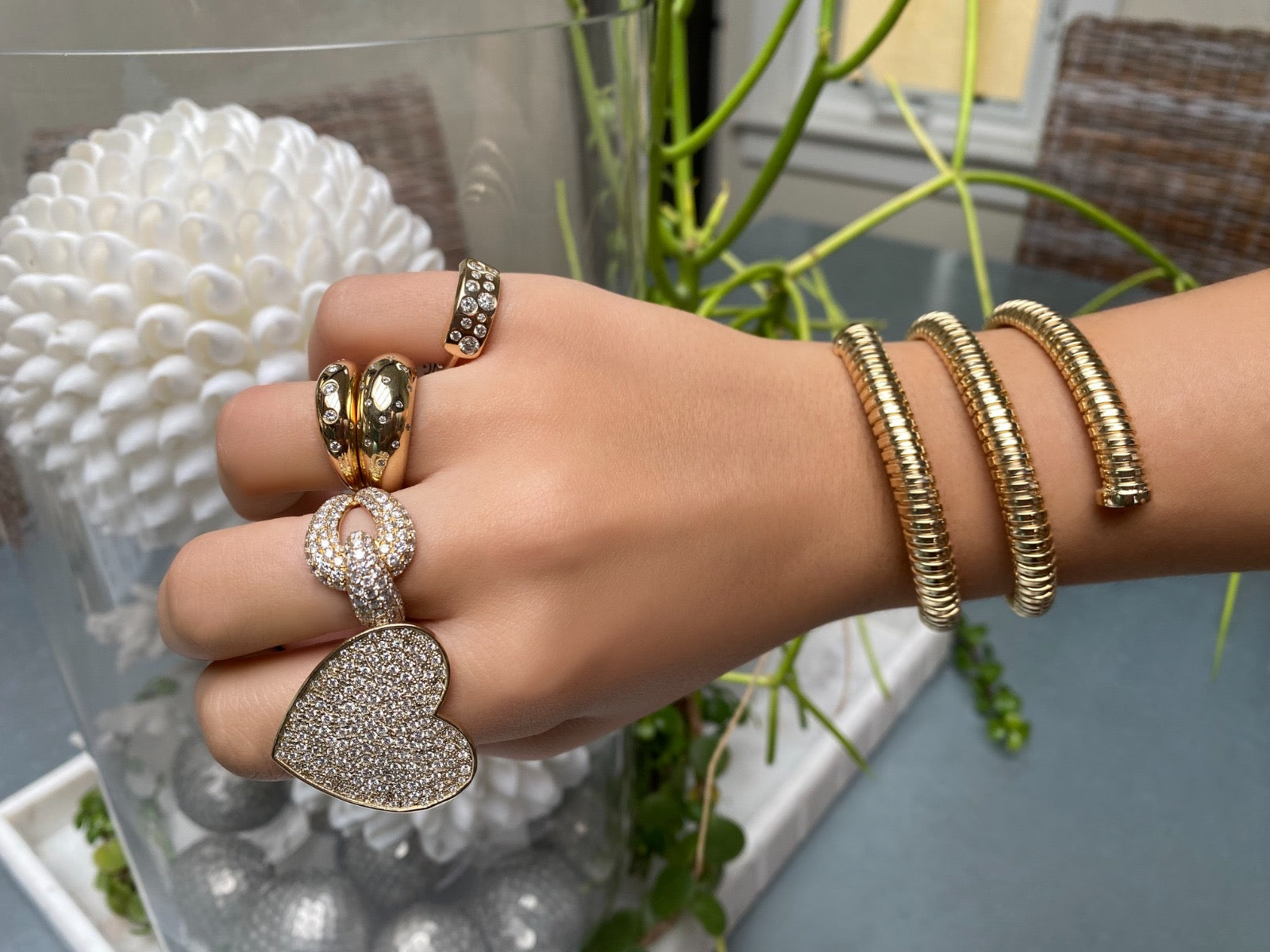 Our newest addition to the Diamond Pave Disc collection. She boasts 2 carats of white dazlzing Diamonds, VS2 clarity and G color. She is a show stopper and loves to be the center of attention at any party. Availabe in white, yellow or rose gold.