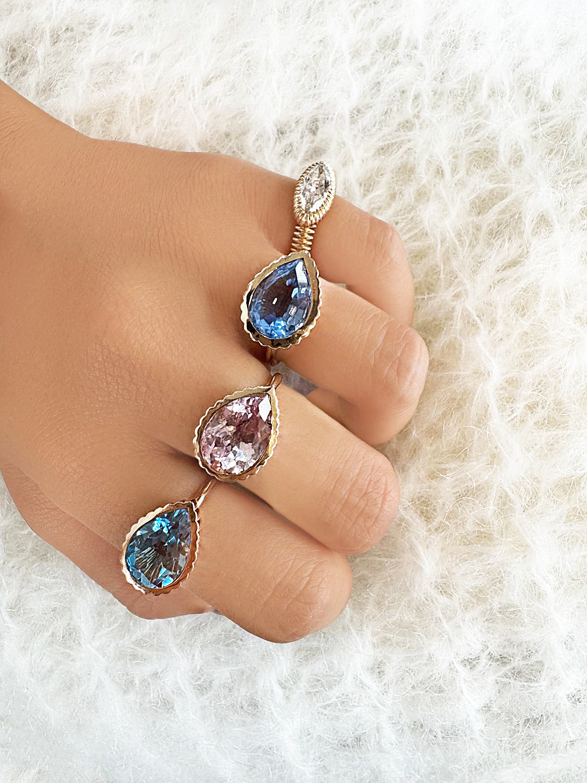 Sleek and modern, the Omega Ceylon Padparadscha Sapphire ring will be one of your favorite pieces of jewelry to wear. She adds a subtle and and dreamy touch of color to your SWJ stacks. Our Omega collection is meant to be worn on repeat, intentionally omitting Diamonds and spotlighting the uniqueness of each gemstone. 2.50 total carats of pear shaped dreamy peachy pink Sapphire is set in our signature Omega reeded bezel for a sleek and modern feel.