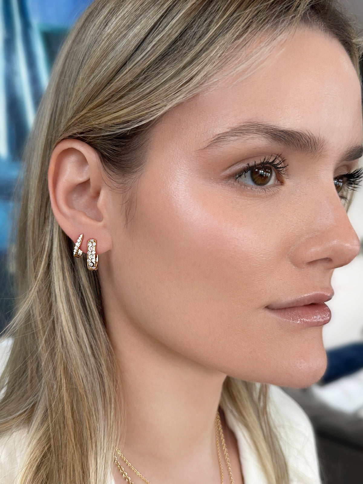Timelss and modern, the Chloe Diamond huggies will be the earrings you never take off. They are light weight and comfortable, boasting .22 total carats of white, natural Diamonds.