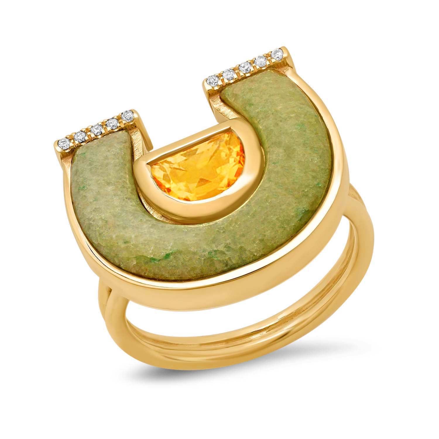 14K YG Citrine, Aventurine and Diamond Horseshoe Ring