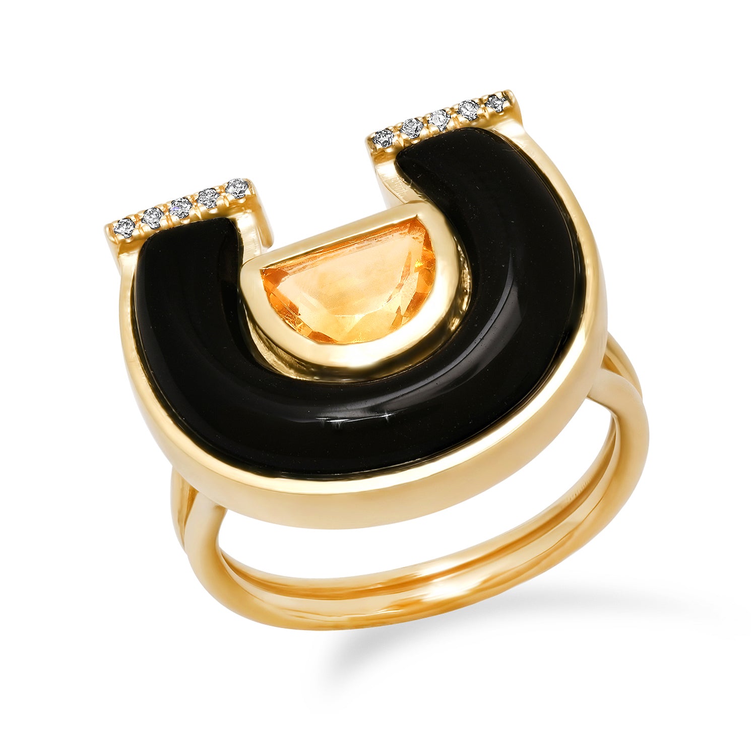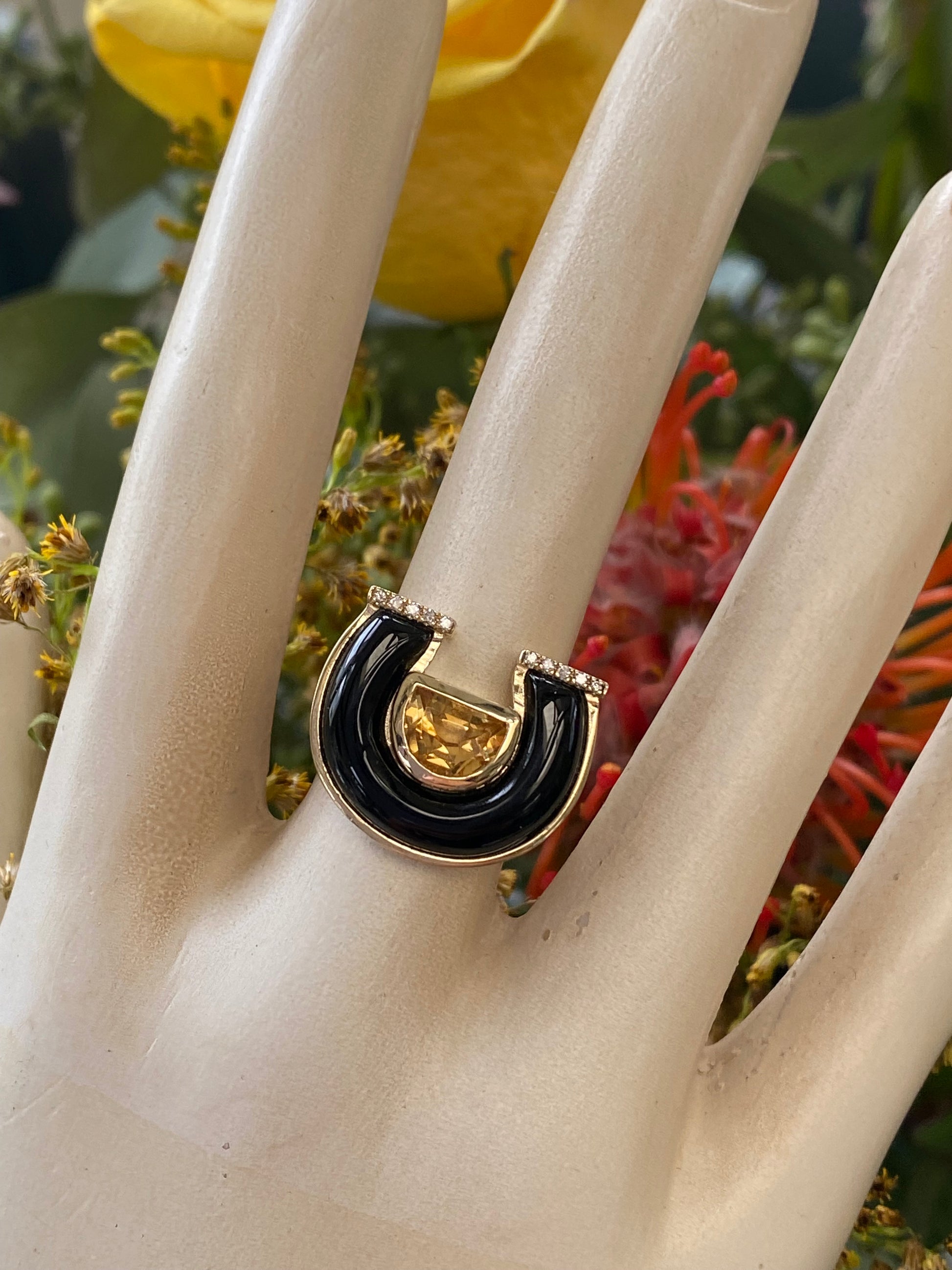 14K YG Citrine, Onyx and Diamond Horseshoe Ring