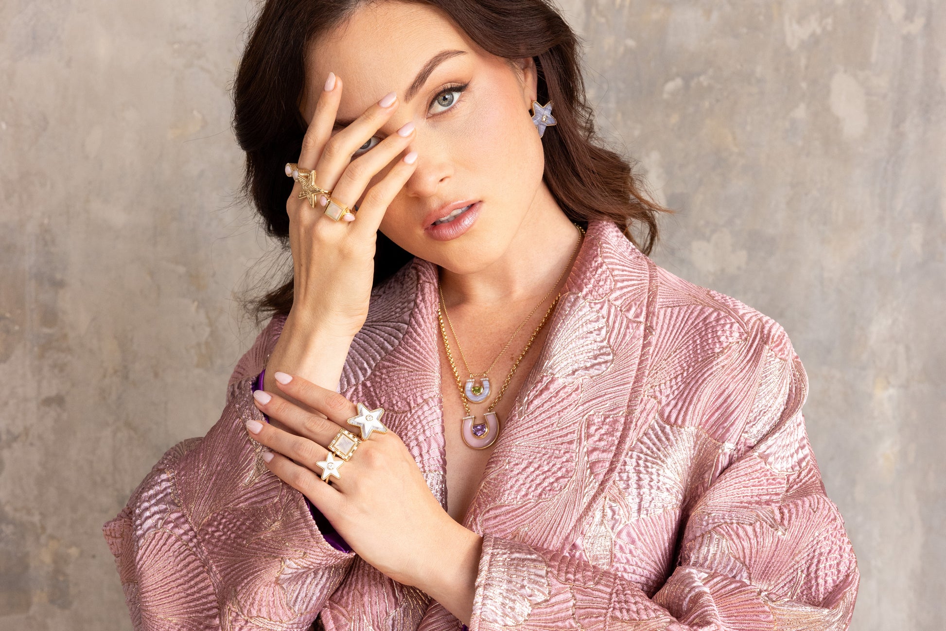 Our Star power collection is a reminder to reclaim our power and step in to the limelight. Being the star of the show is our birthright and we are ready to shine. A talisman of faith in our own power. The Star Power Lace Agate and Diamond earrings boast two dreamy Diamonds totaling .50 tc, set in beautiful Lace Agate inay nestled in our signature reeded 14K yellow gold bezel. Stars measures 28 mm across.