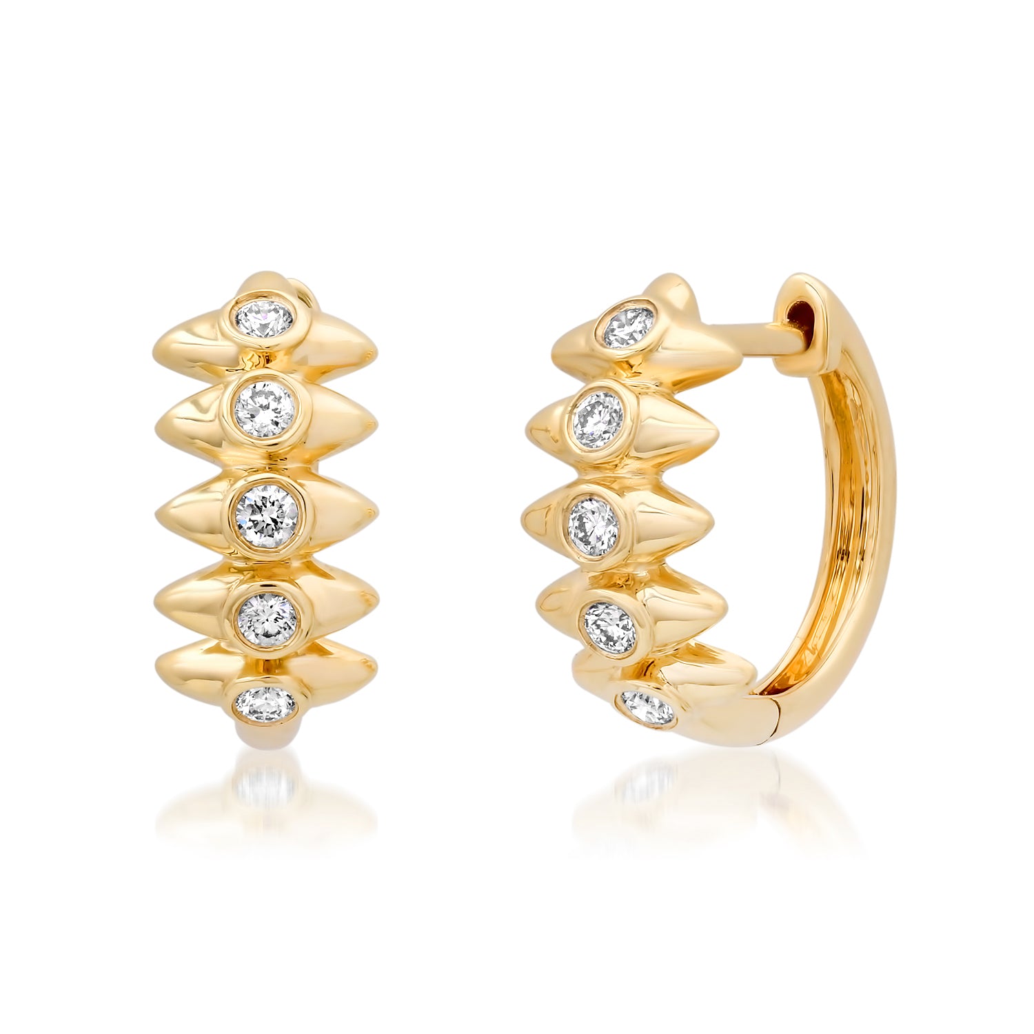 The perfect everyday huggies found. Our Orbis collection is both timeless and edgy with spikes of gold. The huggies boast .20 total carats of natural white diamonds.