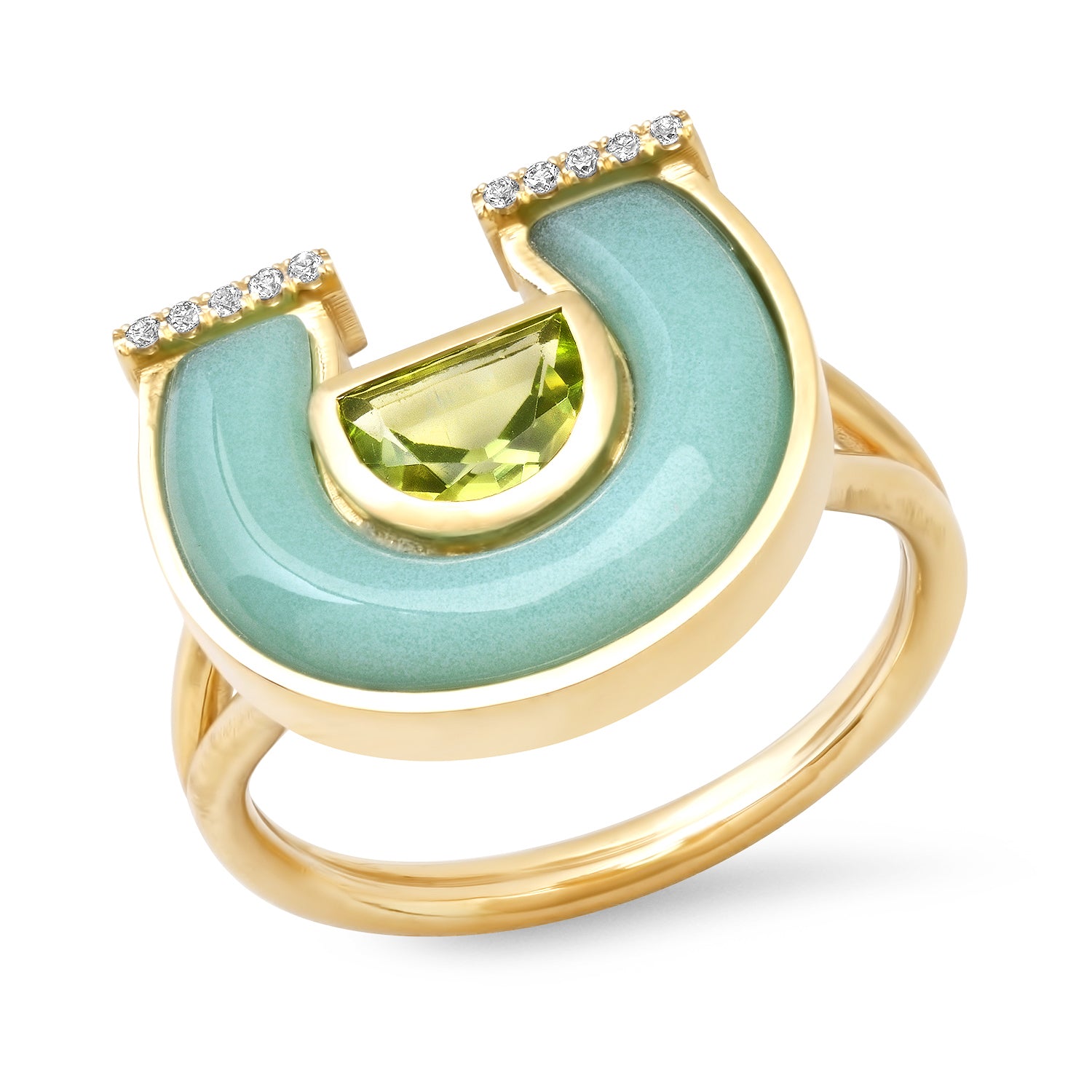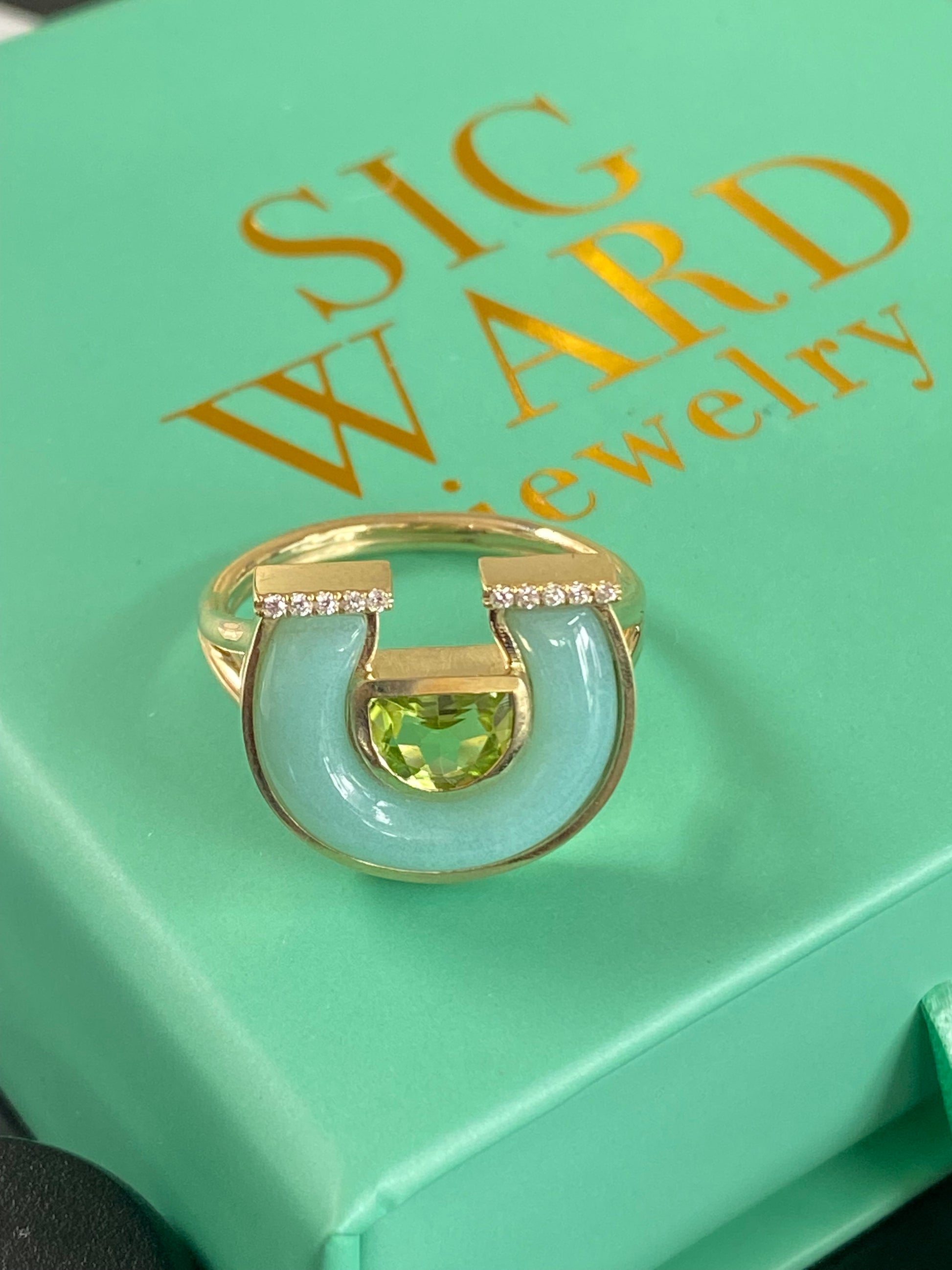 14K YG Peridot, Chrysoprase and Diamond Horseshoe Ring