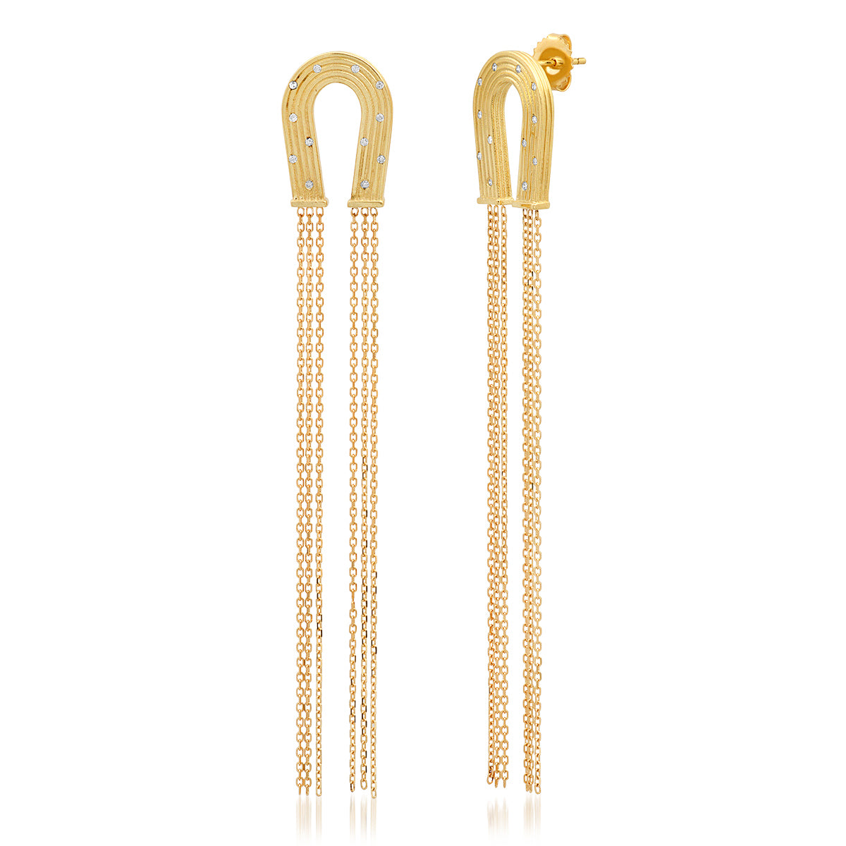 14K Yellow Gold and Diamond Tassel Horseshoe Earrings