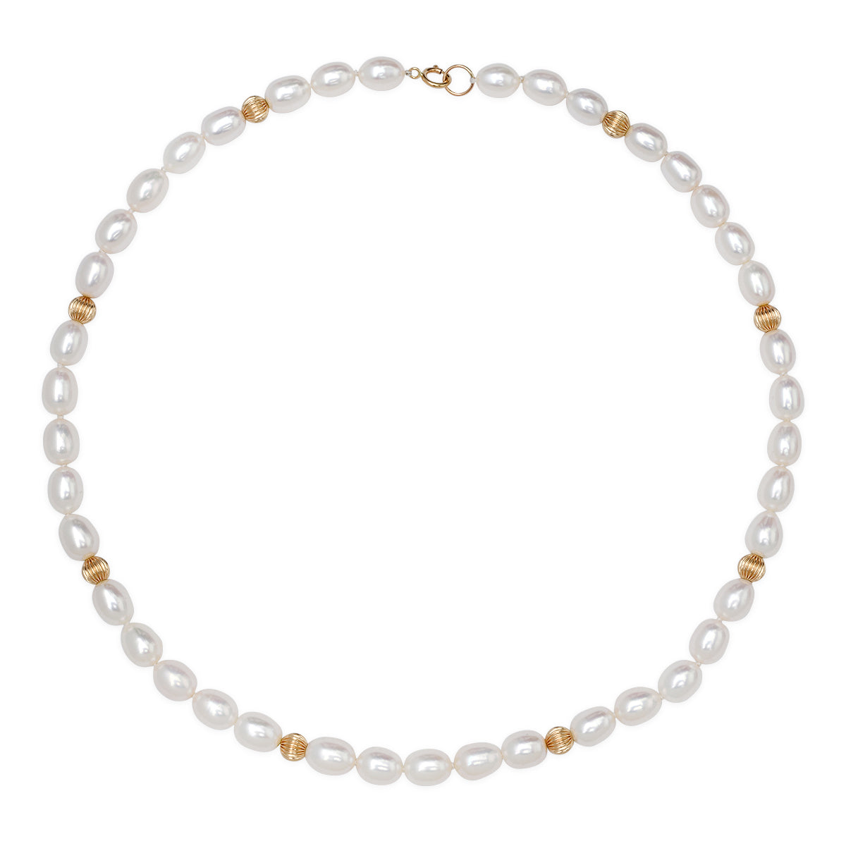 14K YG Fresh Water Pearl and Reeded Gold Bead Necklace
